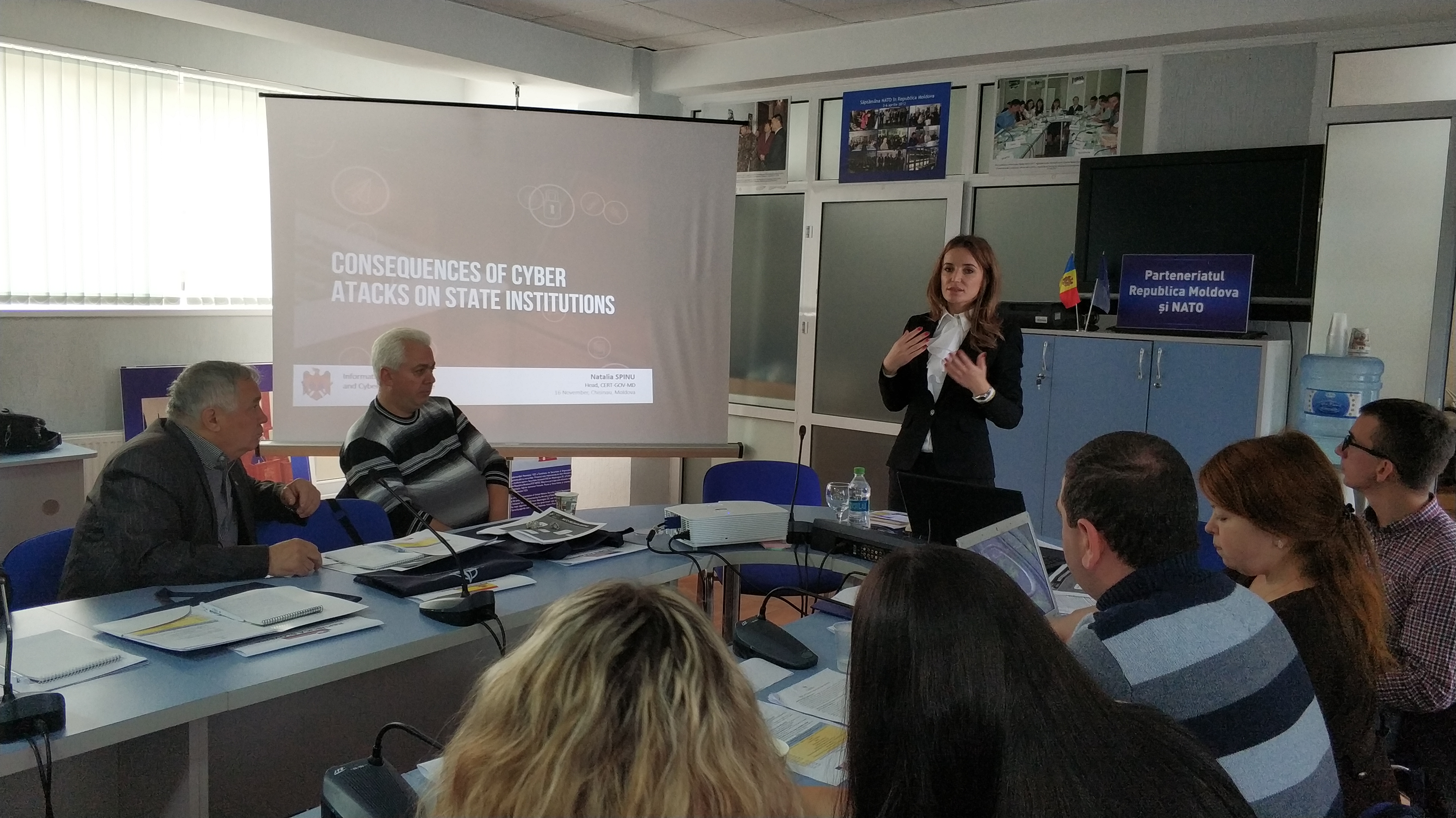Pentru o mai bună înțelegere a subiectului în cauză, au participat în calitate de vorbitori: dl James H. MACKEY – Șef al Oficiului Cooperare Globală și Euro-Atlantică, Divizia Afaceri Politice și Politici de Securitate, Cartierul General NATO; dl Steven DANIELS – Ofițer responsabil de justiție și afaceri interne, Delegația Uniunii Europene în Republica Moldova și pe dna Natalia SPÎNU – Șefa Centrului de Răspuns la Incidente Cibernetice CERT-GOV-MD, Serviciul Tehnologia Informației și Securitate Cibernetică. Vorbitorii au oferit informații privind procesul de luare al deciziilor în NATO, comunicarea internă privind pregătirea întâlnirilor Consiliului Nord-Atlantic, a Summit-urilor și întâlnirilor ministeriale; cooperarea dintre UE și NATO și consecințele atacurilor cibernetice asupra instituțiilor statului.